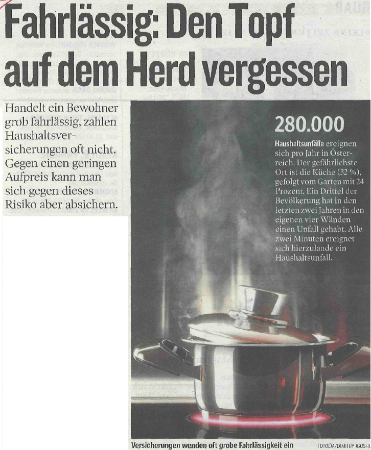 Kleine Zeitung über versichern24 – Fahrlässig: Den Topf auf dem Herd vergessen