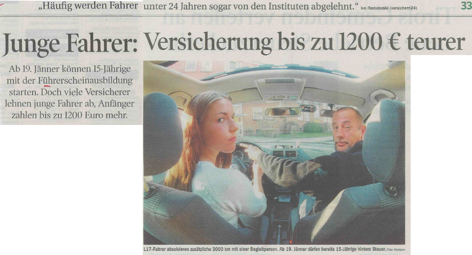Tiroler Tageszeitung über Versichern24: Junge Fahrer – Versicherung bis zu 1200 € teurer